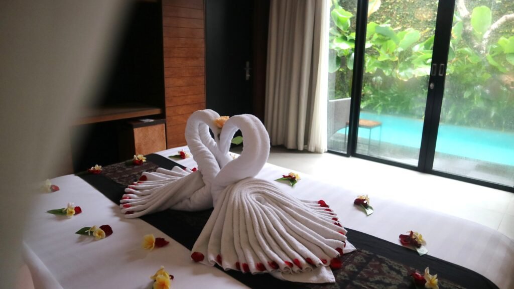 Step into romance at Abia Villa Legian with our magical honeymoon setup. From swan towel art and flower-petal décor to a heart-shaped flower bath by your private pool, every detail is designed for intimate, unforgettable moments perfect for honeymoons, anniversaries, or a special surprise for your loved one.